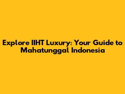 Explore IIHT Luxury: Your Guide To Mahatunggal Indonesia