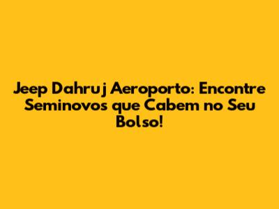 Jeep Dahruj Aeroporto: Seminovos Incríveis Esperam Por Você!
