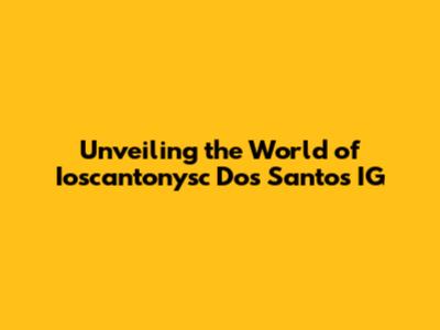 Unveiling The World Of Ioscantonysc Dos Santos IG